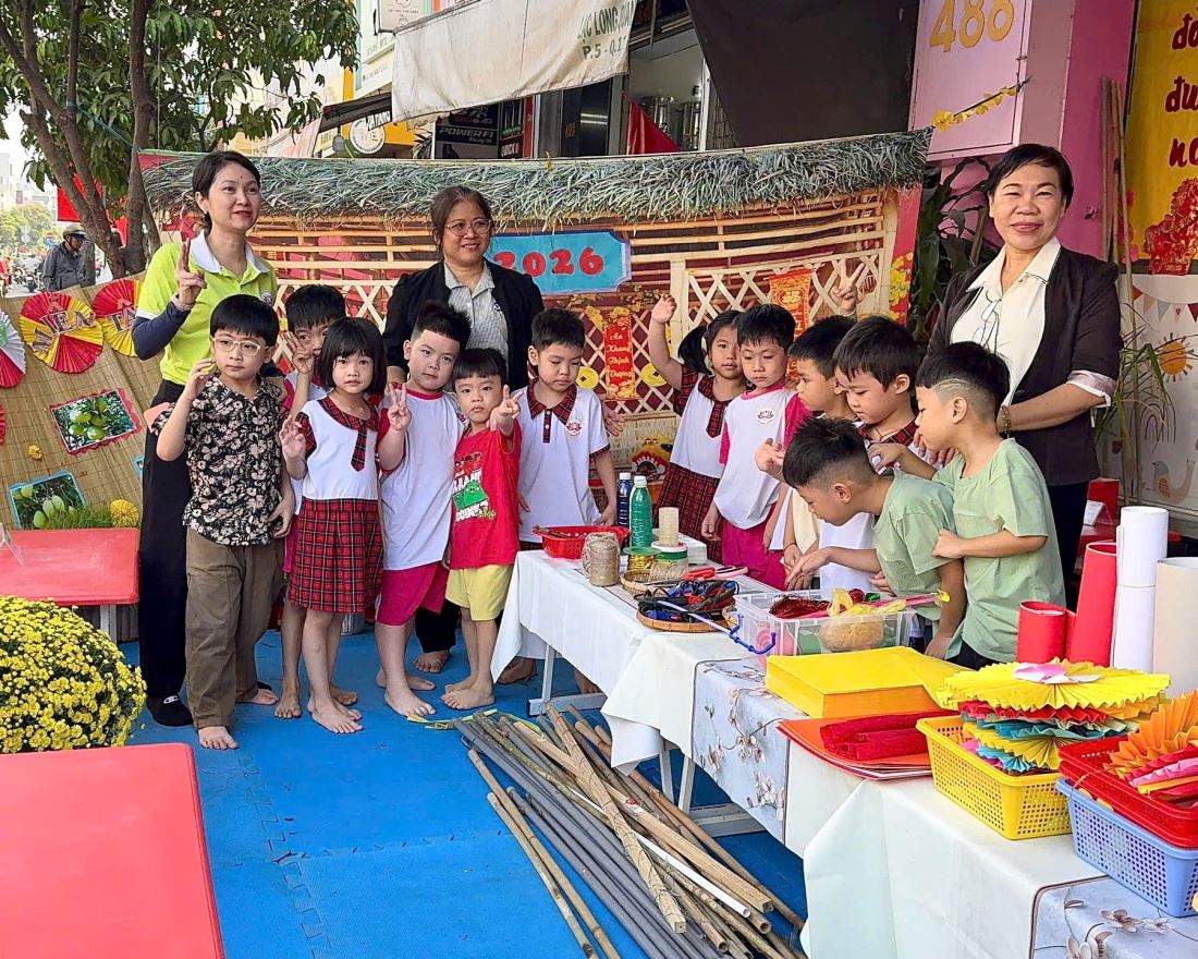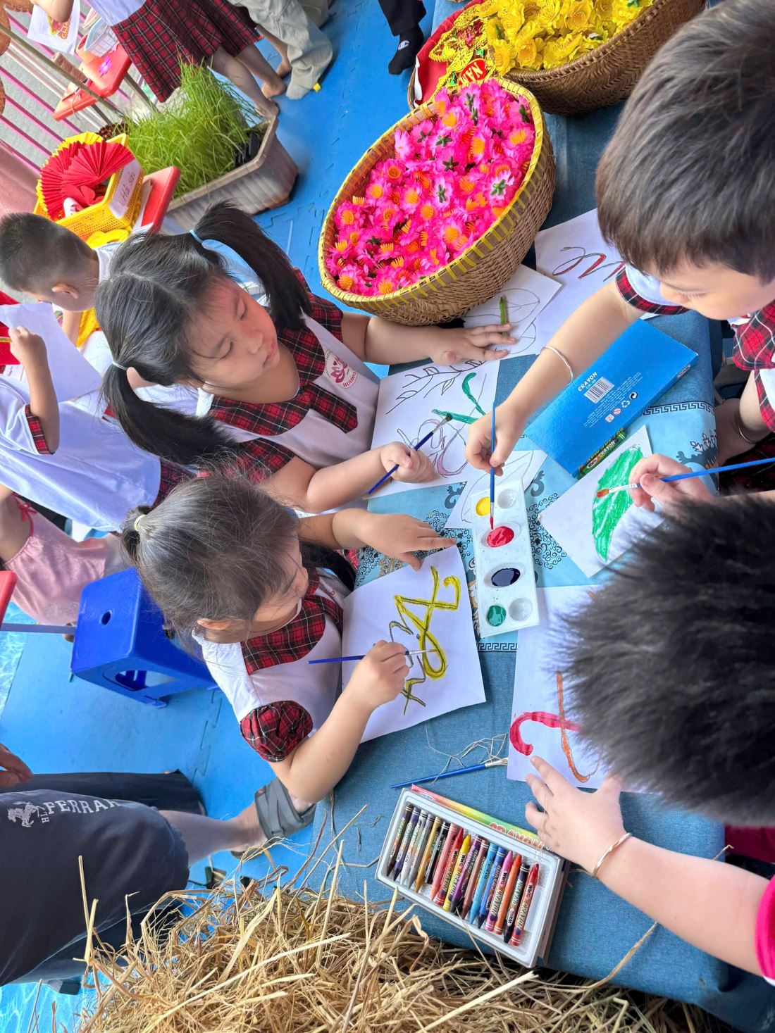 Có những nét tô còn nghuệch ngoạc, có những hình cắt chưa thật ngay ngắn… nhưng đổi lại là sự tập trung, hào hứng và tinh thần teamwork cực kỳ đáng yêu của các con. Chính sự “không hoàn hảo” ấy lại làm nên những gian hàng đầy sáng tạo, với thật nhiều màu sắc và tràn ngập tiếng cười