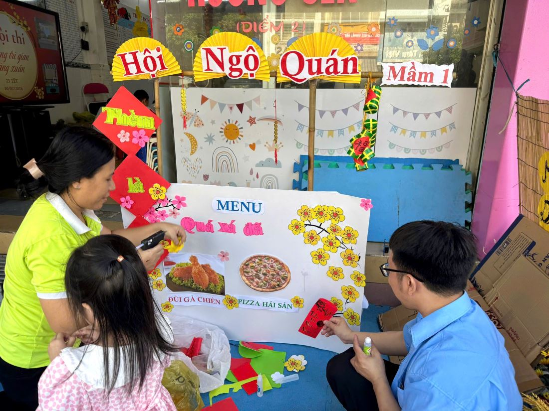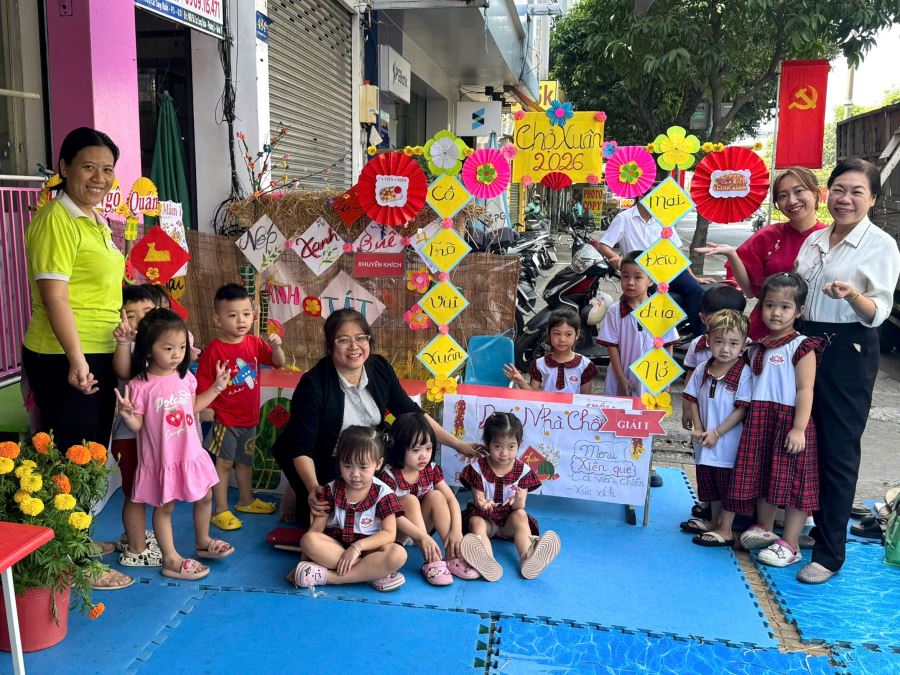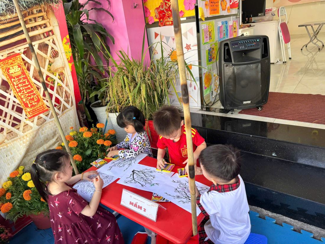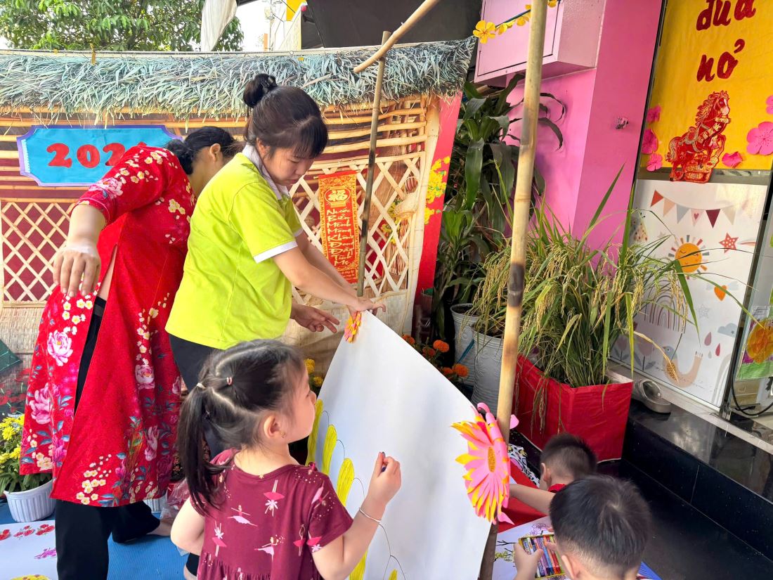 Mỗi lớp đảm nhiệm trang trí một gian hàng với những nguyên vật liệu do Nhà trường chuẩn bị sẵn. Dưới sự hỗ trợ tận tâm của các Thầy Cô và đại diện Hội Phụ Huynh, các con được tự tay tham gia từ khâu dựng khung quầy, cắt dán, tô vẽ cho đến trang trí từng chi tiết nhỏ xinh 🥰