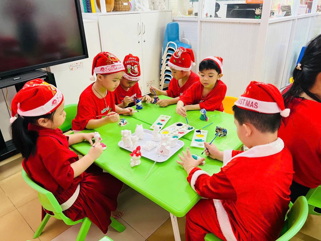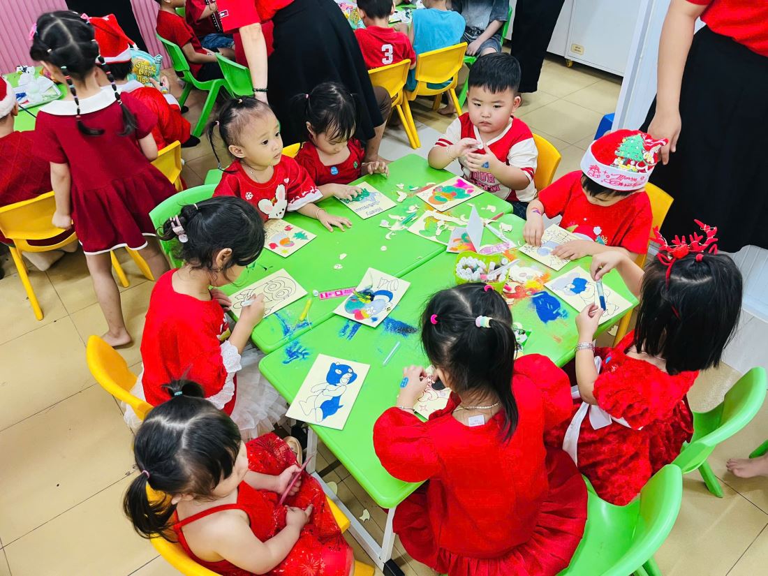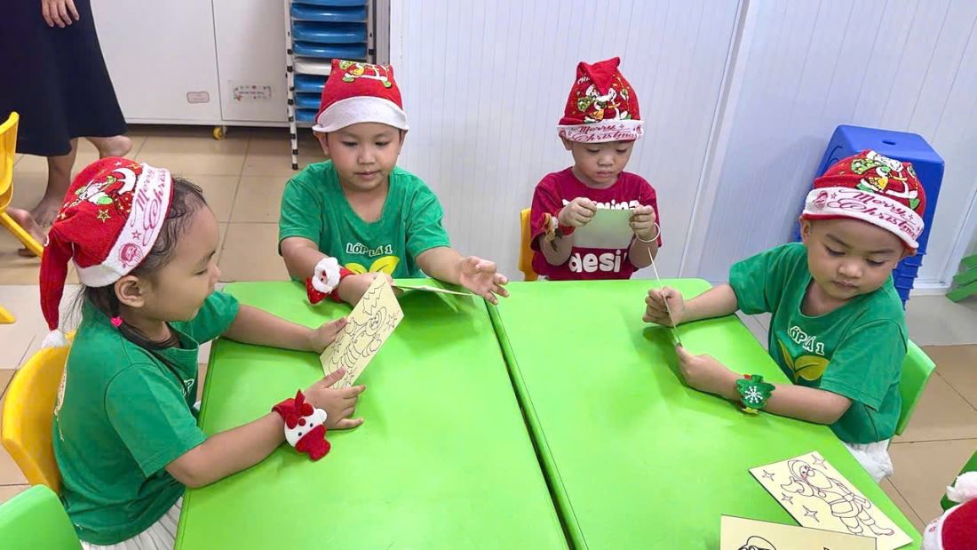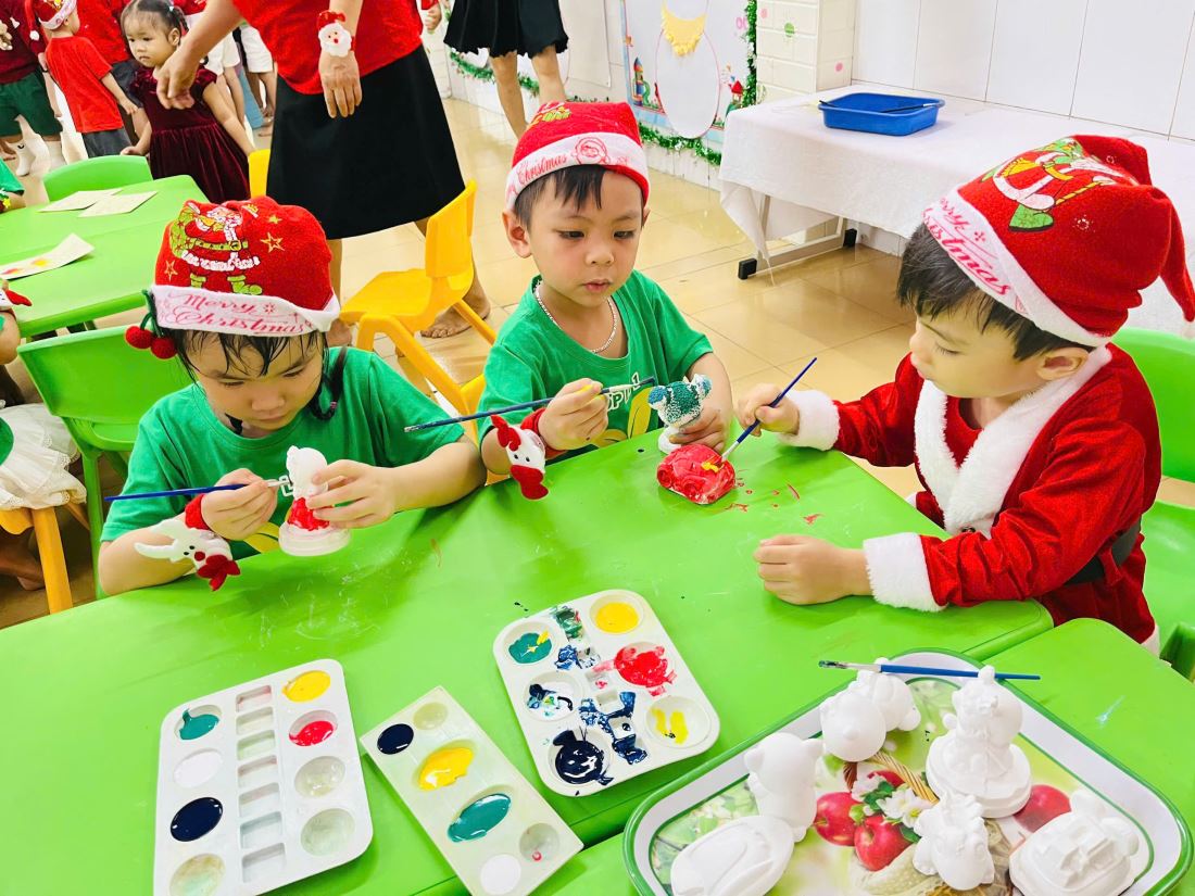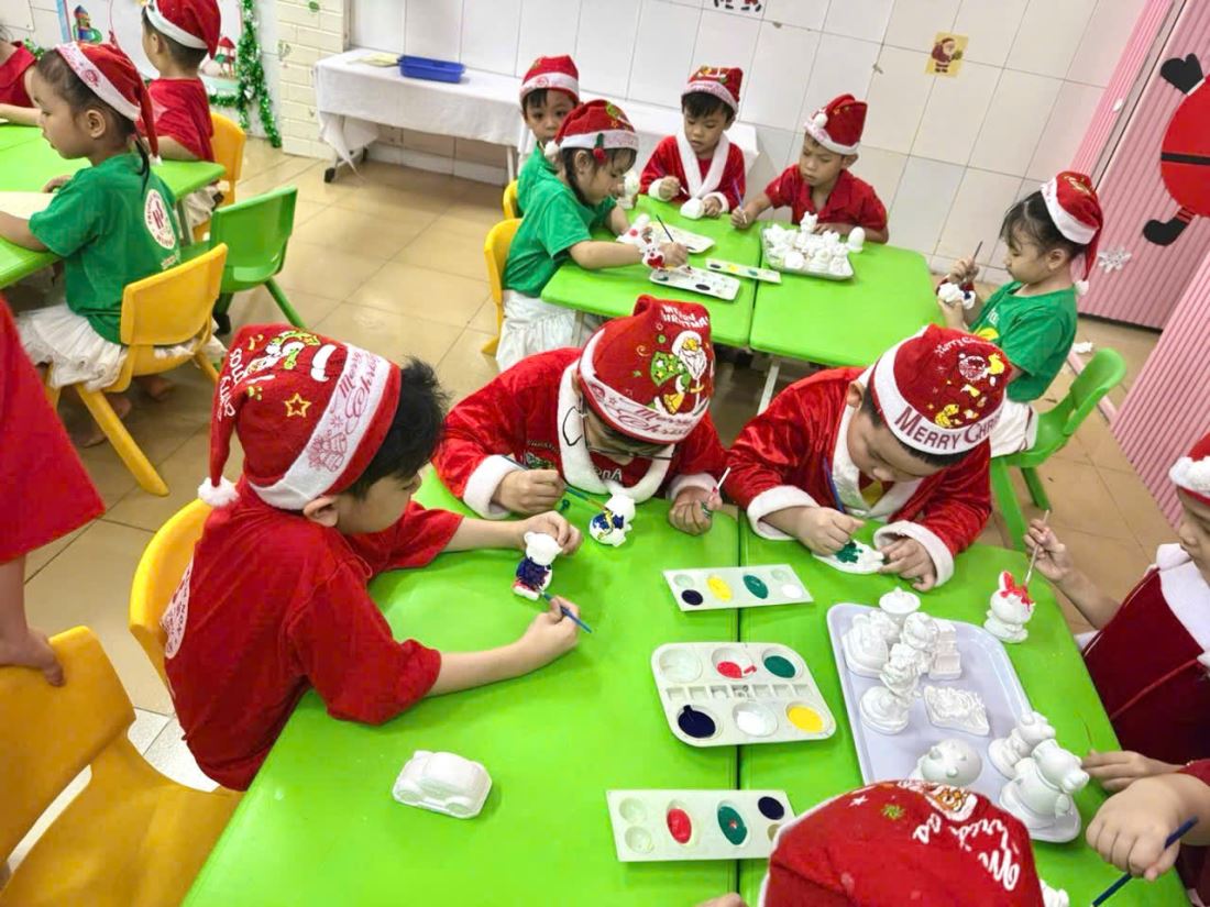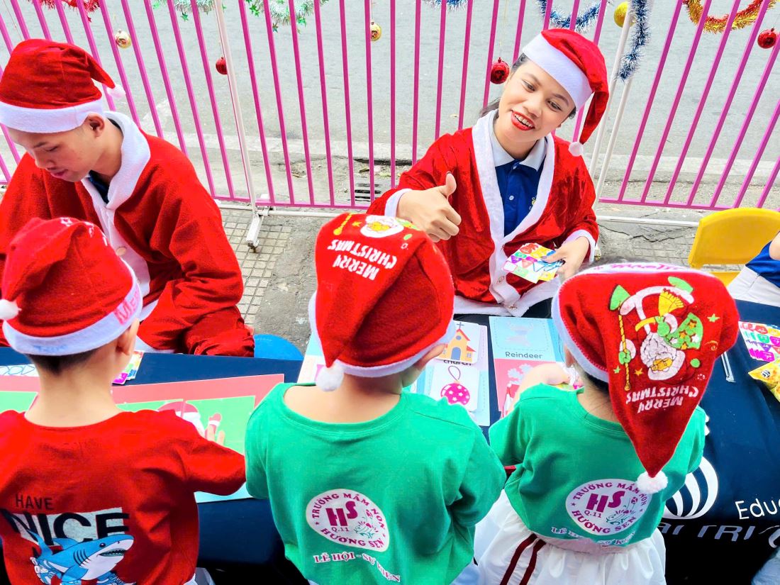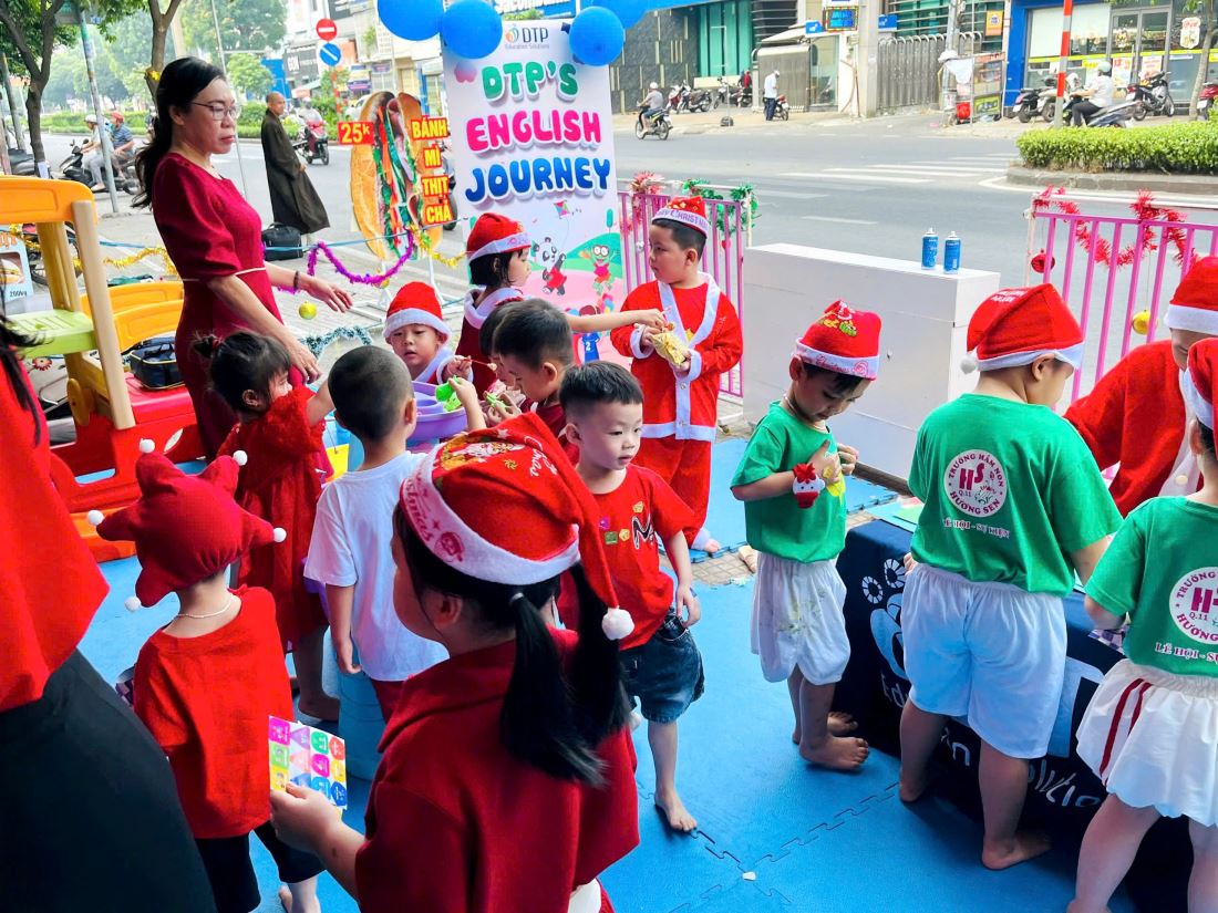 Các bạn nhỏ hào hứng vượt qua những “trạm” thử thách Tiếng Anh đầy thú vị, thỏa sức sáng tạo tại các góc workshop như làm tranh cát, tô tượng, câu cá… Không khí càng thêm sôi động với những tiết mục văn nghệ đáng yêu và khoảnh khắc thích thú khi các con nhận được quà từ ông già Noel
