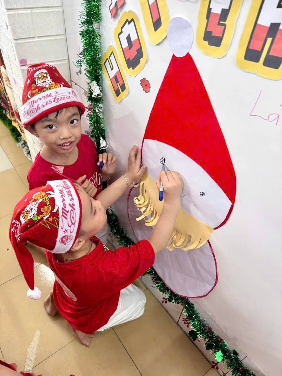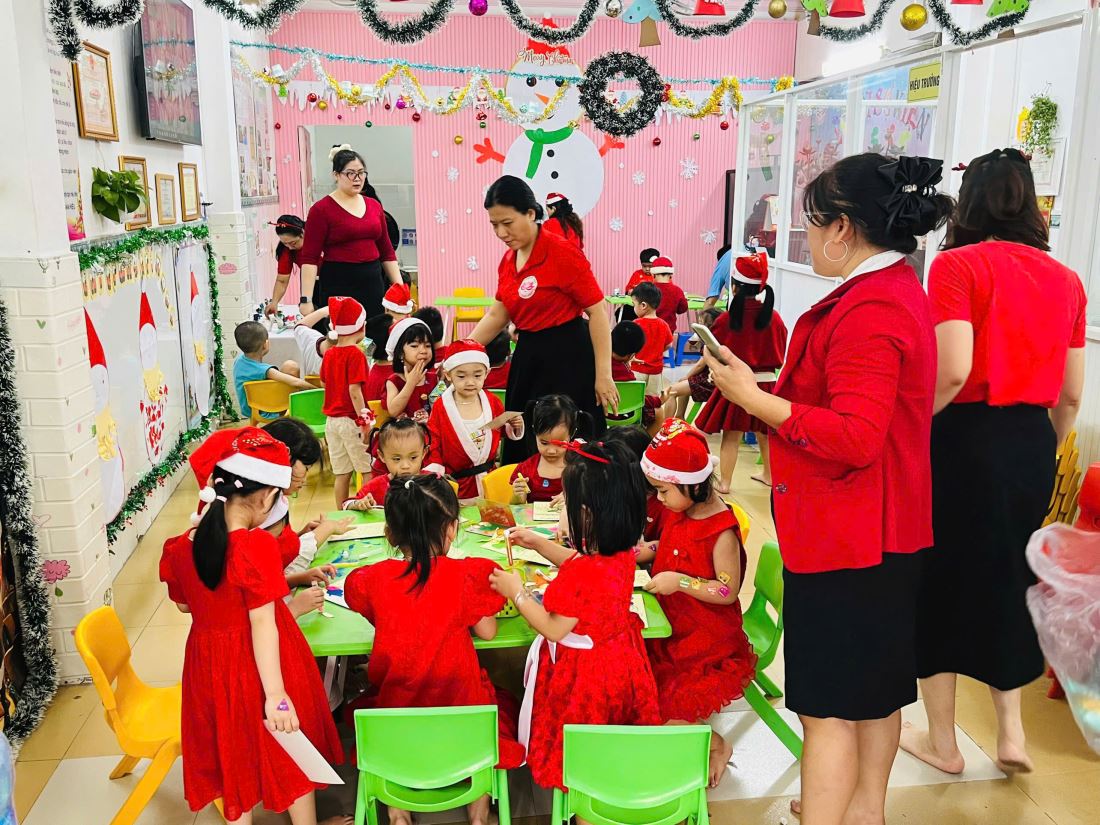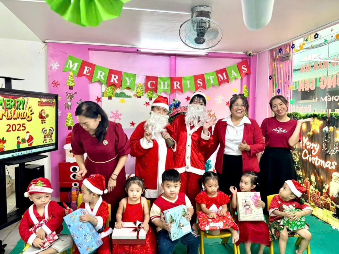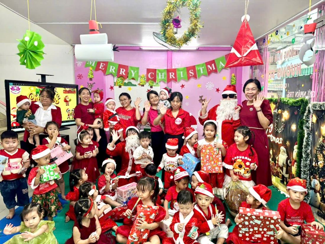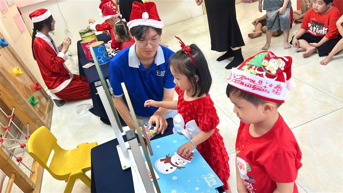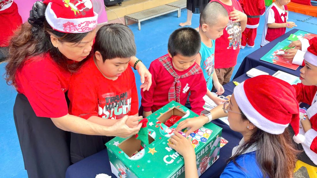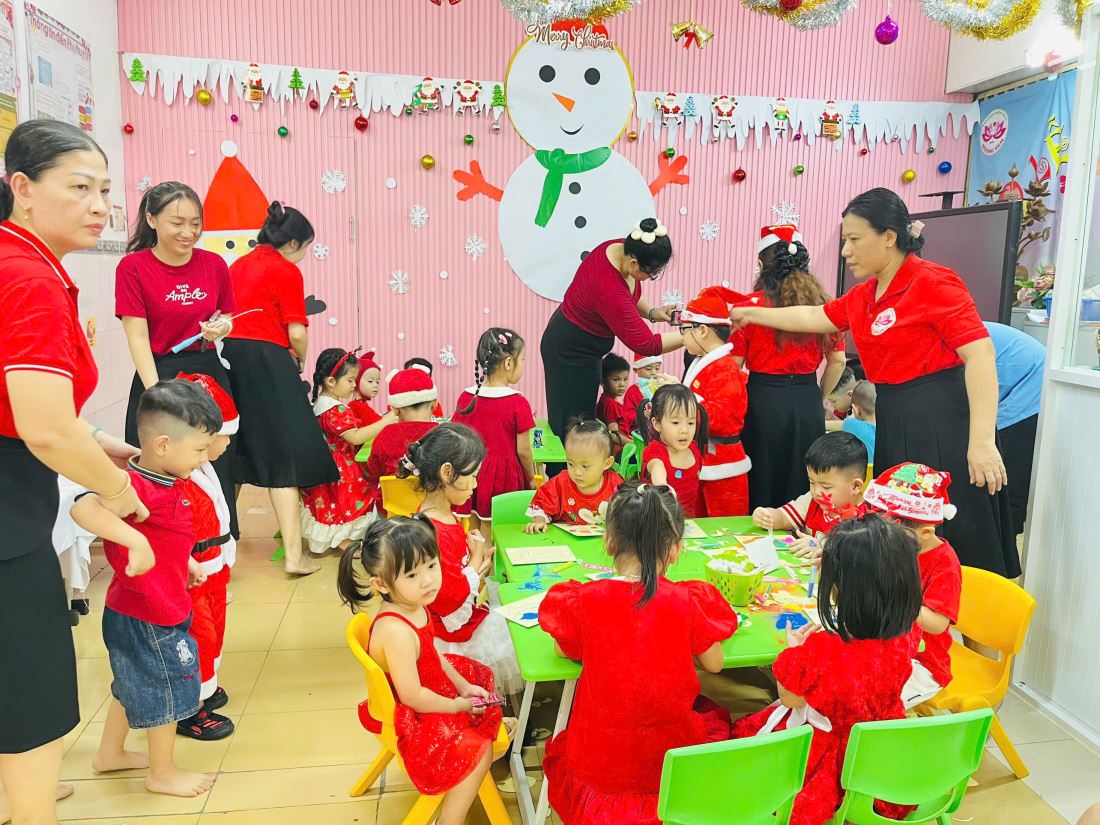 Các bạn nhỏ hào hứng vượt qua những “trạm” thử thách Tiếng Anh đầy thú vị, thỏa sức sáng tạo tại các góc workshop như làm tranh cát, tô tượng, câu cá… Không khí càng thêm sôi động với những tiết mục văn nghệ đáng yêu và khoảnh khắc thích thú khi các con nhận được quà từ ông già Noel