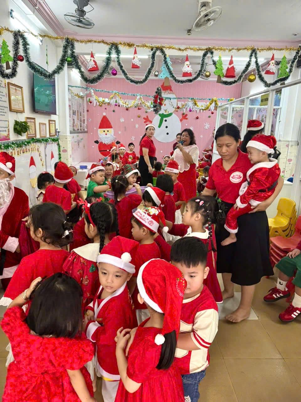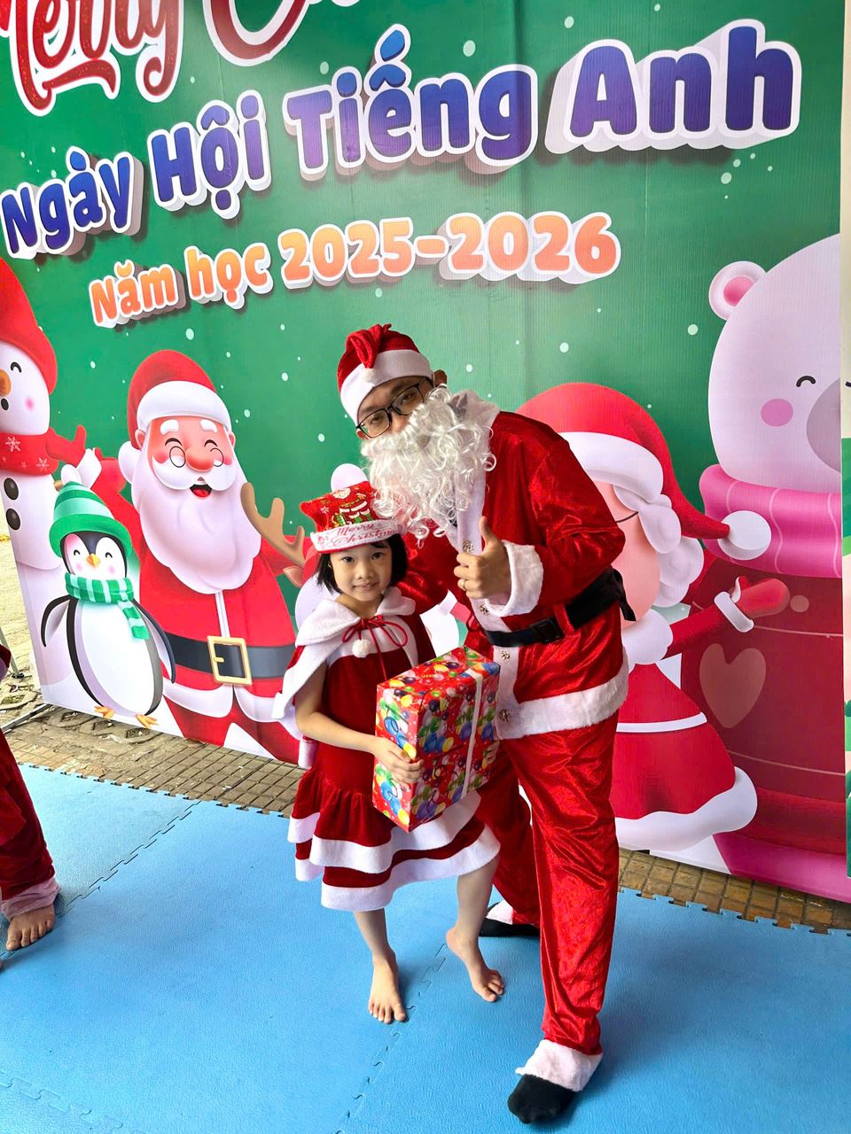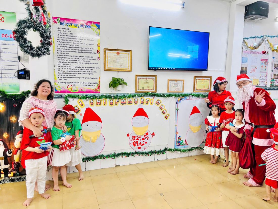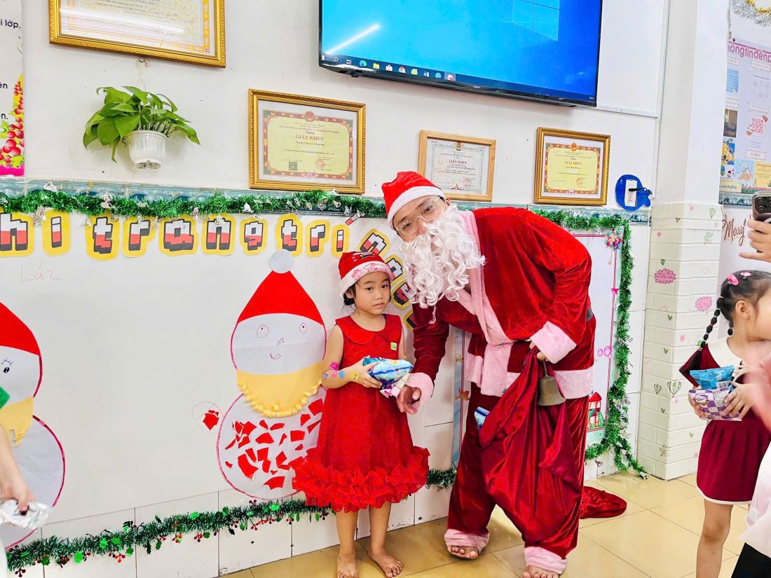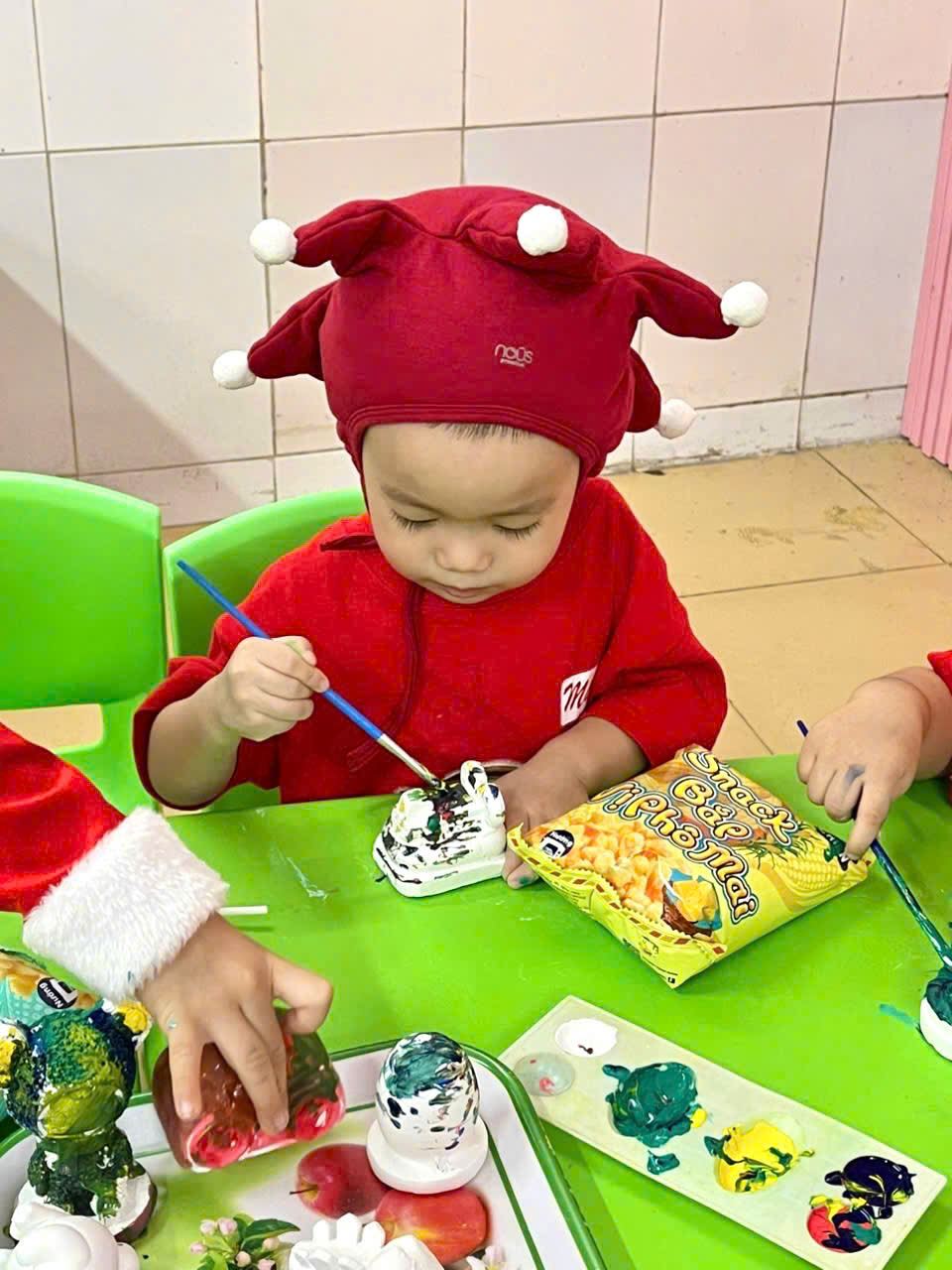 Các bạn nhỏ hào hứng vượt qua những “trạm” thử thách Tiếng Anh đầy thú vị, thỏa sức sáng tạo tại các góc workshop như làm tranh cát, tô tượng, câu cá… Không khí càng thêm sôi động với những tiết mục văn nghệ đáng yêu và khoảnh khắc thích thú khi các con nhận được quà từ ông già Noel