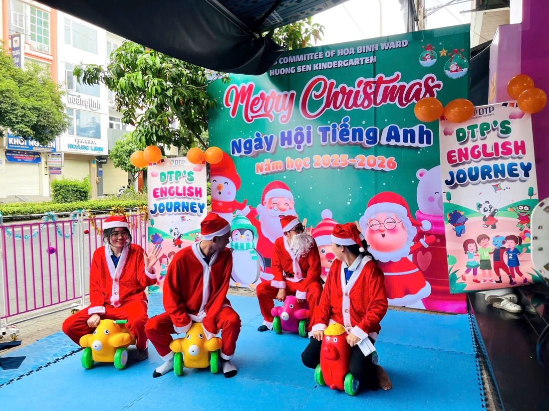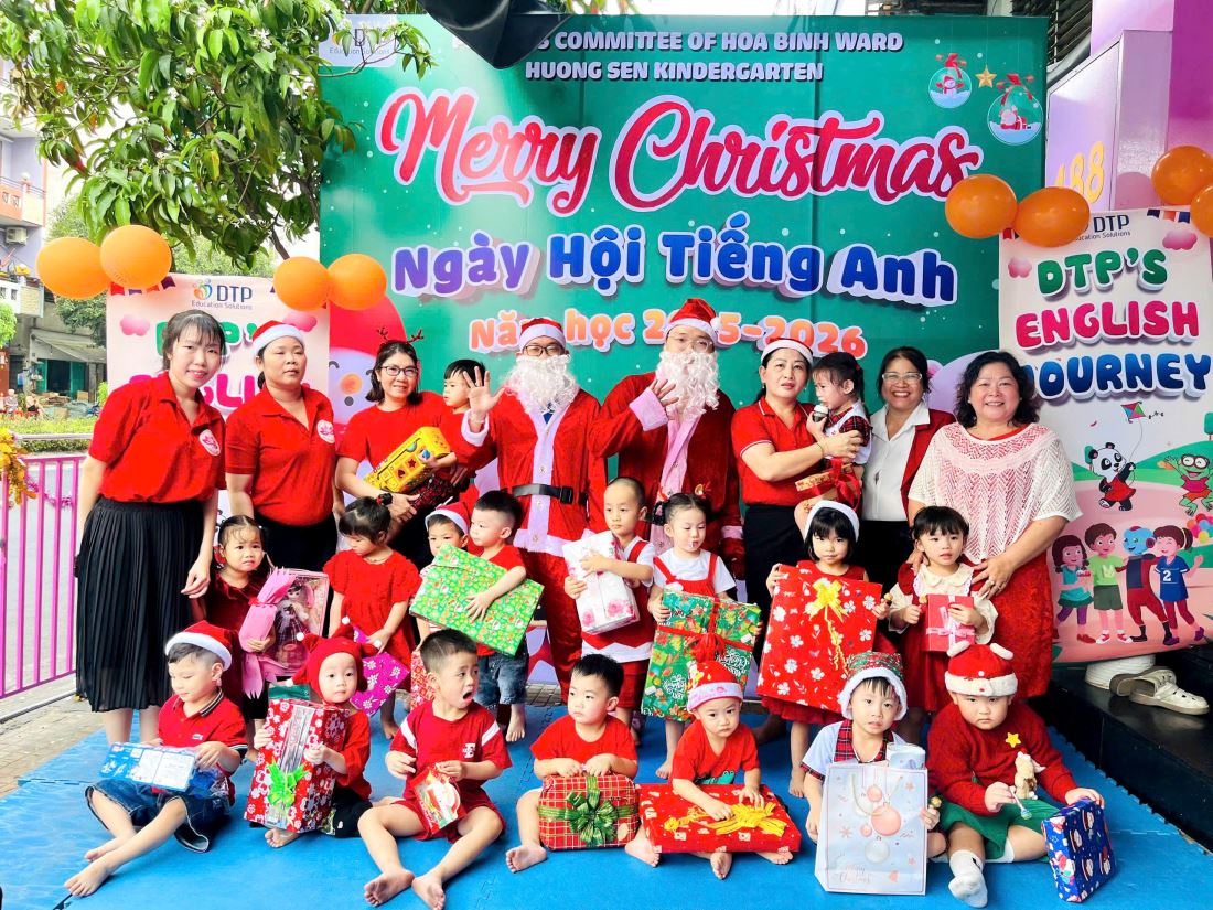 Ahihi! Đó là Ngày hội Tiếng Anh được lồng ghép cùng bữa tiệc Giáng Sinh ấm áp, do Trung tâm Anh ngữ DTP phối hợp cùng tổ chức, đã mang đến cho các bé những trải nghiệm “chơi mà học” thật đáng nhớ đó Ba mẹ!