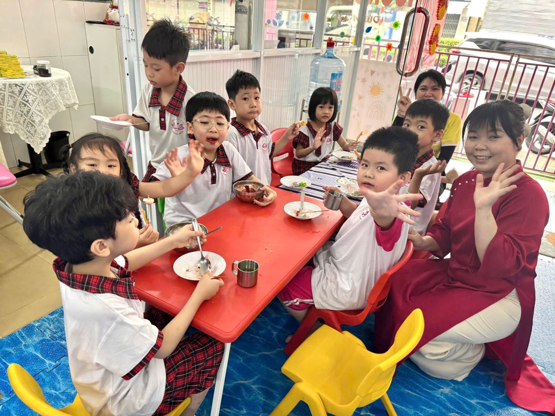 Đồ ăn đã khoái khẩu, nay lại được sẻ chia cùng các bạn và bên cạnh lúc nào cũng có cô quan tâm… bữa tiệc như thế càng trở nên ý nghĩa và ấm cúng, bởi lớn lên trong tình yêu thương chính là món quà đẹp nhất